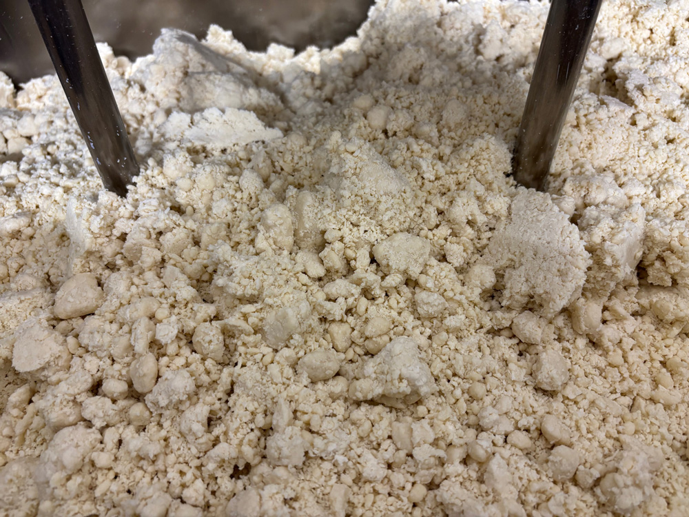 このような2段階の工程を行う理由は、ロールを1回通っただけの粗麺帯では、 麺帯の形にはなっていますが、グルテンの形成が不十分だからです。